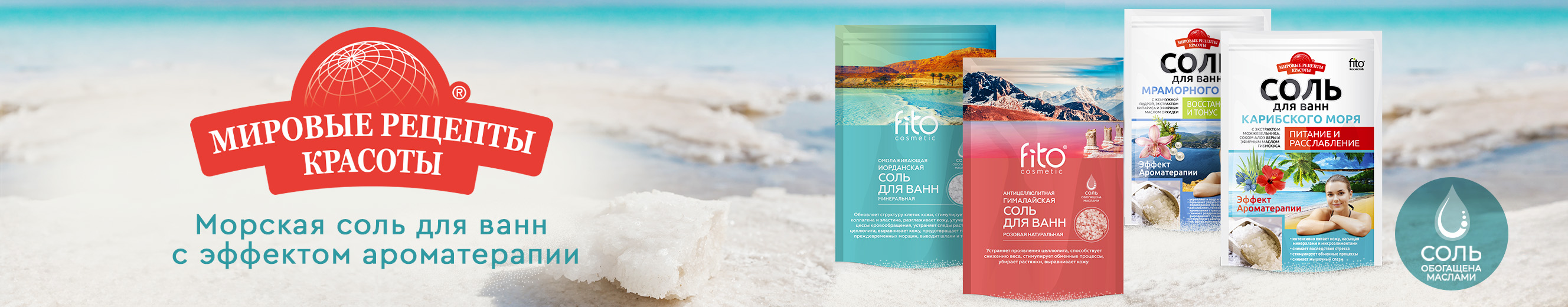 Удивительные морские соли серии ""Мировые рецепты красоты"" с эффектом ароматерапии - это уникальная возможность окунуться в морские глубины в любой момент времени. Продлите ощущение лета, солнца и счастья.